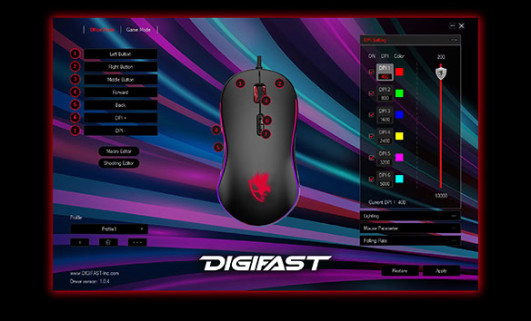 Control the Precision – Digifast Nightfall series allows gamers to seamlessly control the DPI with a push of a button. Easily swap weapons and precision directly from your mouse.
